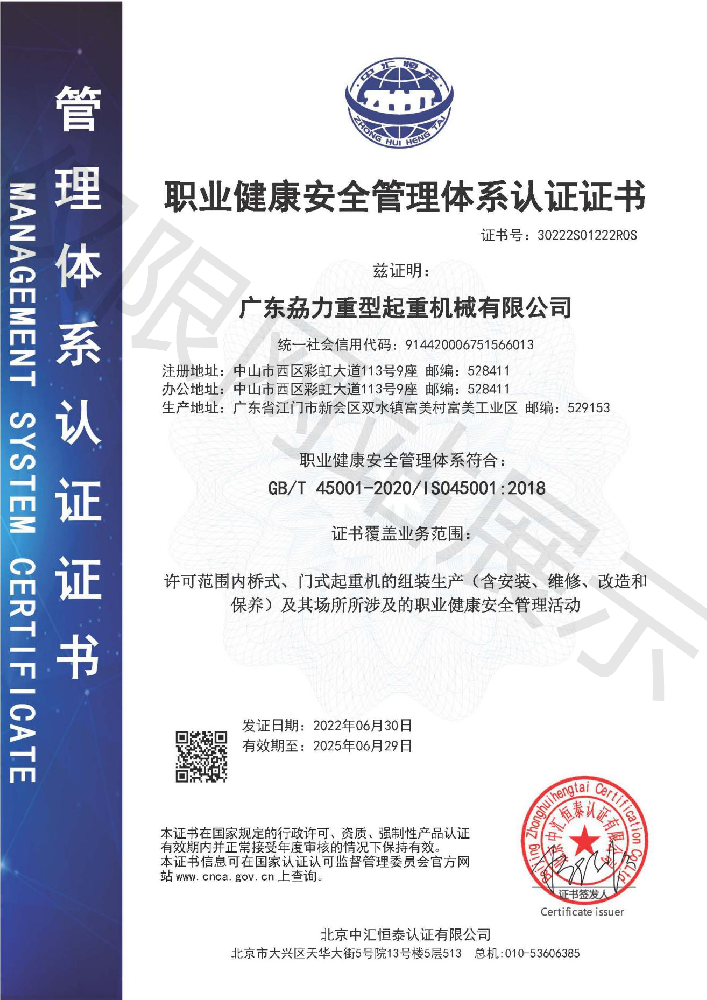 特種TX型式試驗(yàn)合格證--電動(dòng)葫蘆橋式起重機(jī)